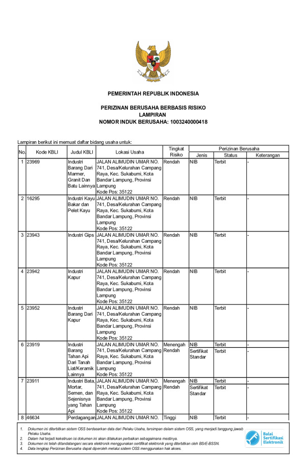 CV. Silica Zaya Bersama bekerjasama dengan perusahaan pertambangan yang sudah memiliki Ijin Usaha Pertambangan IUP Operasi Produksi untuk komoditas Batu Mineral Non Logam dan Jenis tertentu di Daerah Kabupaten Pringsewu dan Kabupaten Lampung Tengah.